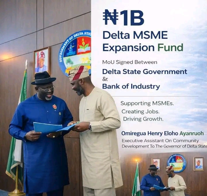 The agreement establishes a ₦1 billion revolving fund managed by the Bank of Industry to provide single-digit interest loans to Micro, Small and Medium Enterprises (MSMEs) operating in Delta State.